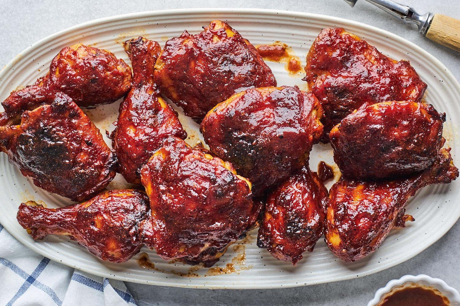 Smoked BBQ Chicken Tender, house-smoked chicken glazed in signature Bajan barbecue sauce, served with creamy macaroni pie and a refreshing breadfruit salad tossed in herbs, mayo, and island spices.