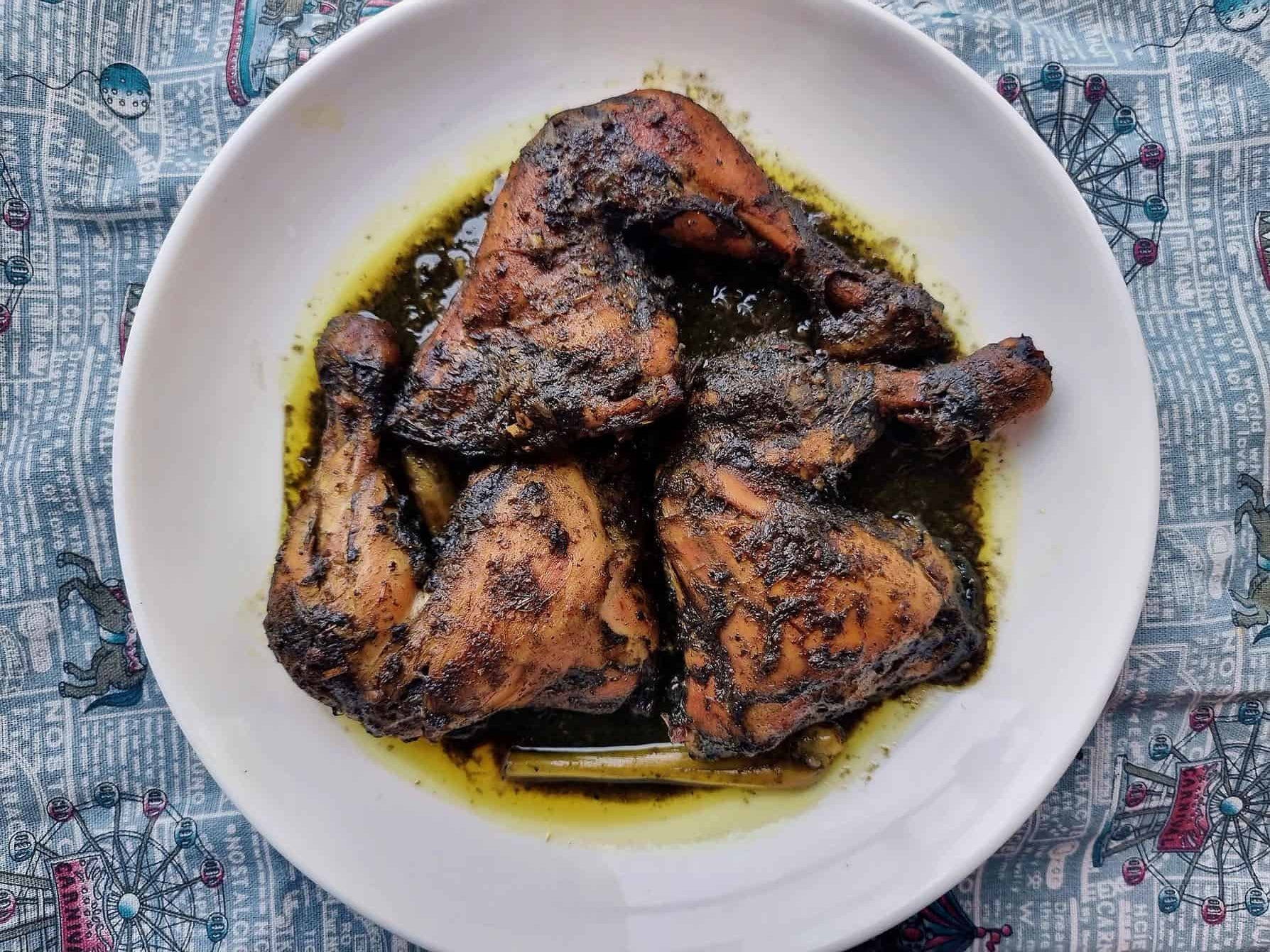 Grilled chicken marinated in a smoky, coconut-based paste of garlic, lemongrass, shallots, turmeric and chilies